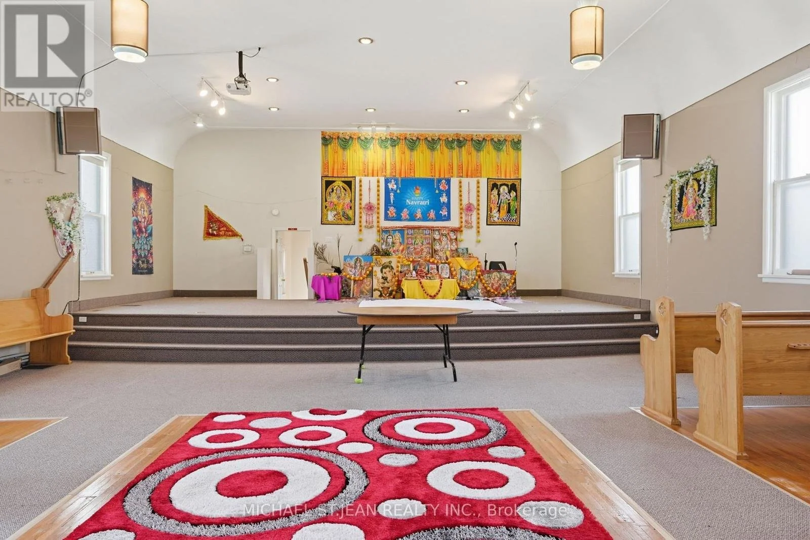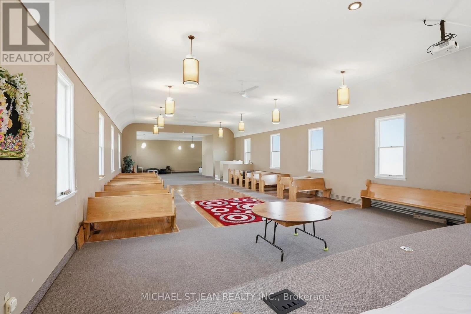 The facility is designed for high functionality, with a fully finished lower level that includes a spacious fellowship hall, a complete kitchen, and multiple breakout rooms for administrative offices or Sunday school classrooms. Positioned on a serviced 66 ft x 132 ft lot, the property benefits from both private on-site parking and ample street parking. With its robust construction and efficient layout, this site represents a versatile opportunity for an established congregation or a new community-focused mission looking for a move-in-ready campus.