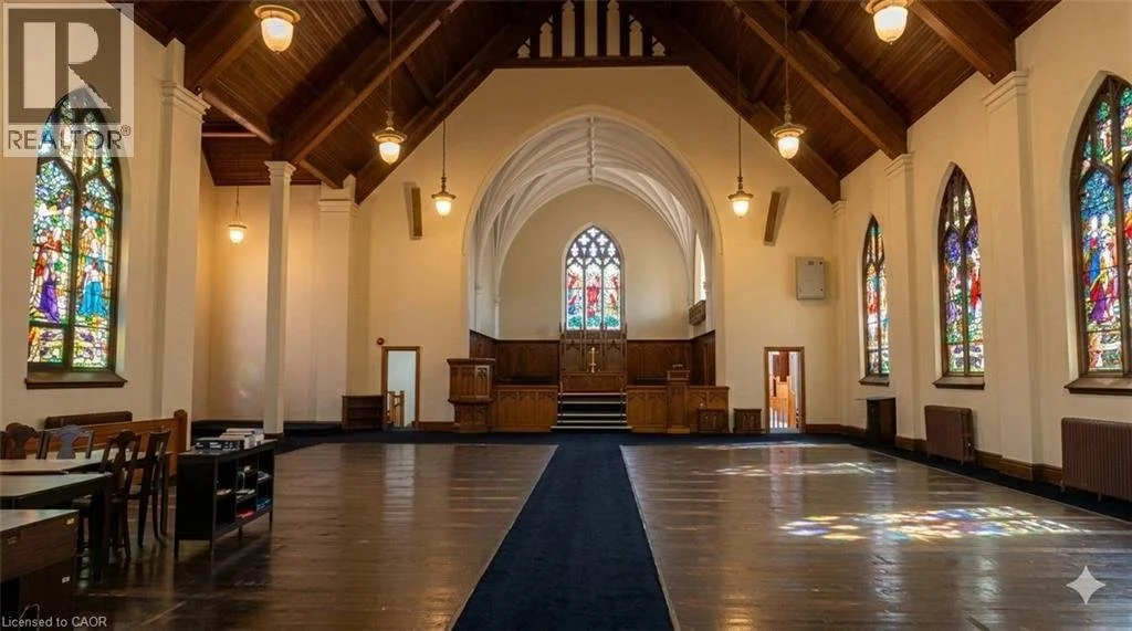 The interior is defined by a sense of scale and craftsmanship, featuring a grand sanctuary with soaring stained-glass windows and dramatic exposed wood beams that create an inspiring atmosphere for worship. The building's layout offers significant capacity for diverse ministry functions, including large-scale services, creative ministry spaces, and community outreach initiatives. With a substantial land size of 220 ft × 170 ft, the property provides the necessary footprint to support a vibrant range of institutional and faith-based activities in the heart of the city.